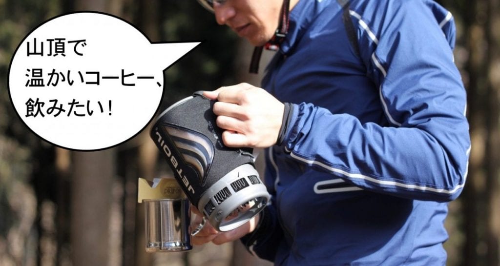 そろそろお腹もいっぱいになったところで、ライドの最終目的であるコーヒー作りに取り掛かります。三回目なるとJETBOILの操作もお手のもの。手早くお湯を沸かし、コーヒーをドリップしていきます。