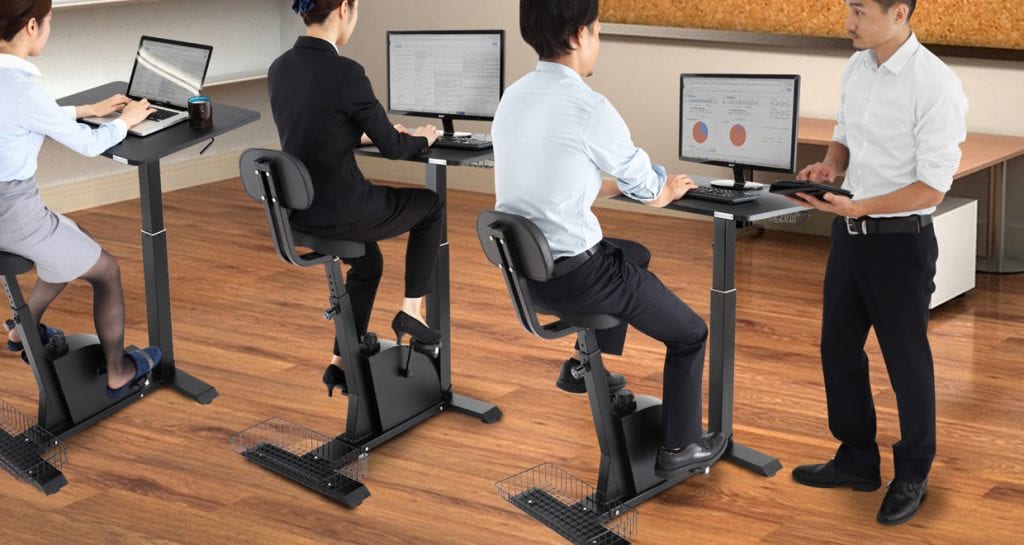 オフィスワー力一の健康増進に貢献する、フィットネスバイクー体型デスク発売。