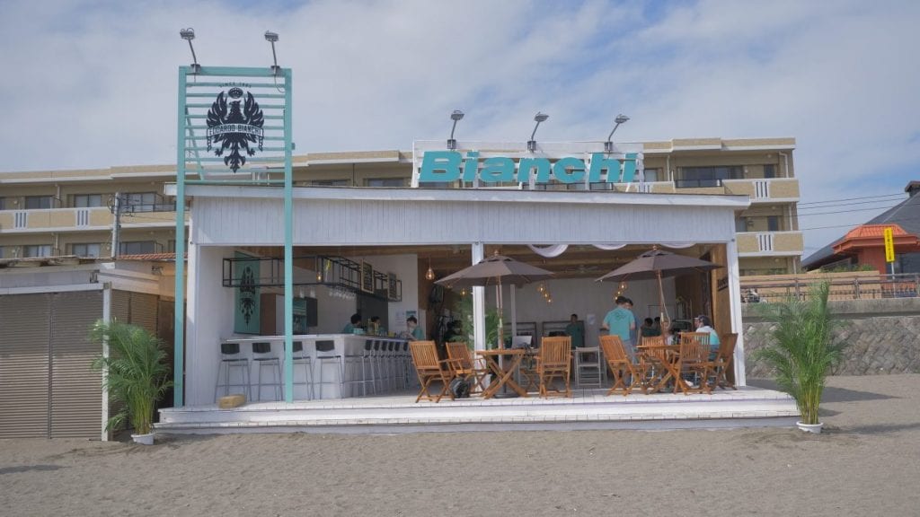 ロードバイクファンだけではなく、ビアンキという総合ブランドのファン、弱ペダ荒北靖友のファン、そしてただただ海でオシャレに優雅に過ごしたい人も待望の期間限定カフェ。自転車ではR134を南下して、左側に「ステーキガスト」が見えたあたりの西浜に降りれば、すぐチェレステカラーがちらほら見えるはず。電車の方は逗子駅・あるいは新逗子駅から徒歩10分。