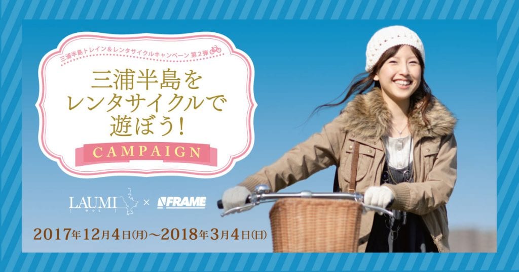 三浦半島観光連絡協議会とFRAMEはレンタサイクルを使ってもっと旅やお出かけを楽しんでもうため、12月4日(月)から3月4(日)まで三浦半島のレンタサイクルを活用したキャンペーンを実施します。