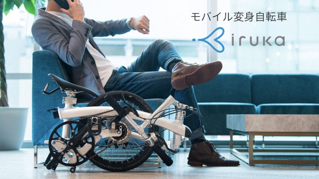 2019年5月、まったく新しい折りたたみ自転車「iruka」が発売となった。トップチューブ中央部を大胆にカットしたスリットに後輪を格納することができる「ジャックナイフフレーム」が大きな特徴であり、折りたたみ時には高さ50cmを下回るコンパクト設計だ。一目で「何これ!?」と思わせる、インパクトの大きい一台である。