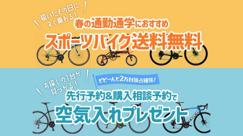 そんな中、ワイズロードオンラインから新生活応援として、人気ブランド独占20,000台を確保した先行受注が開始されました! 送料無料or空気入れプレゼントという嬉しい特典つき!早速チェックしてみましょう。