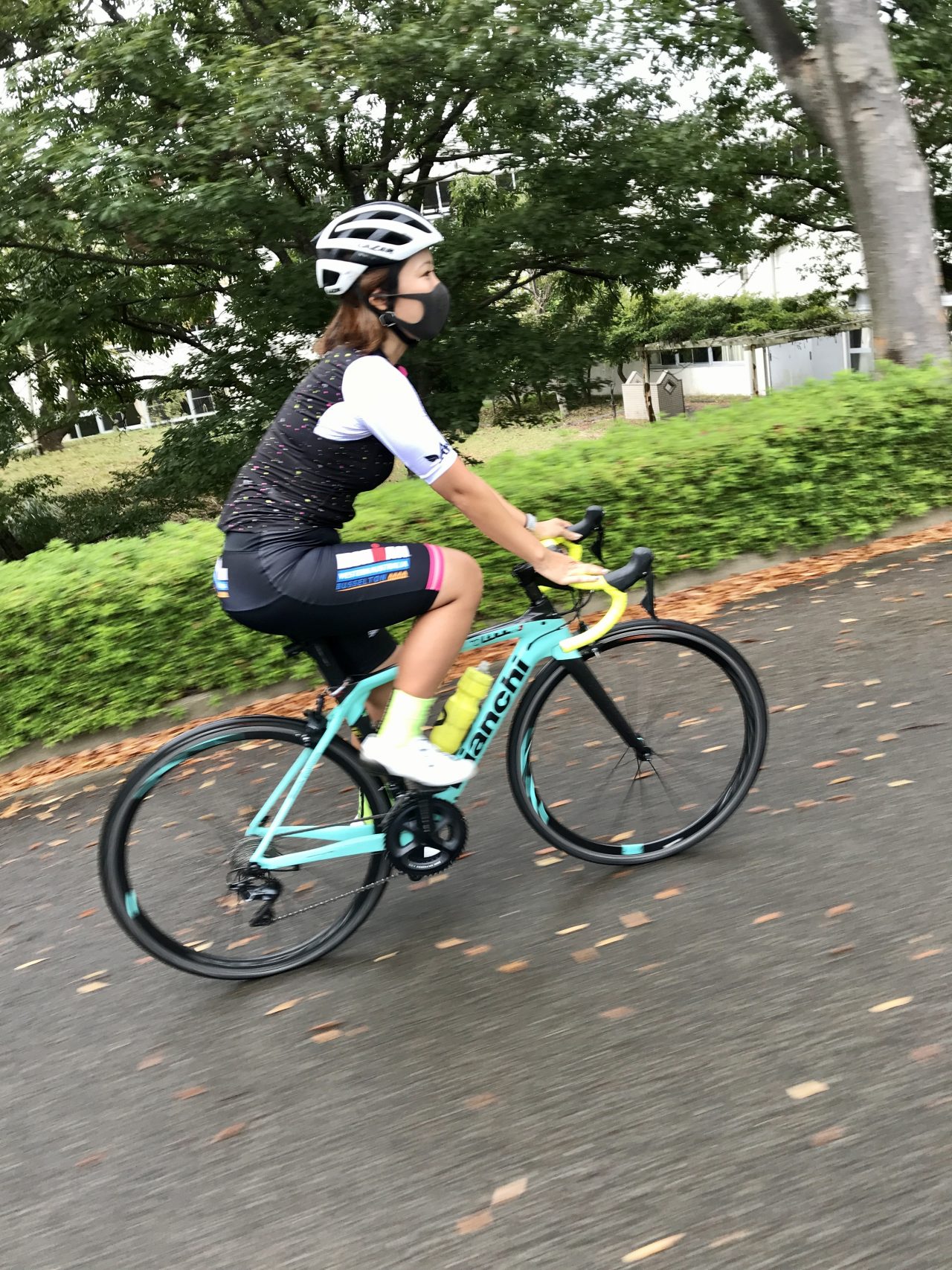 「秋になると落ち葉や枝が多いから気を付けて!」とMizuさん。過去にこの場所で、落車した経験があるらしい。