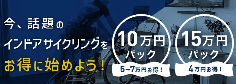 お得にインドアサイクリングが始められるパックは要チェック。必須アイテムのスプロケット、マットが必ず入っているので、自転車本体があればすぐにインドアサイクリングを楽しめます。