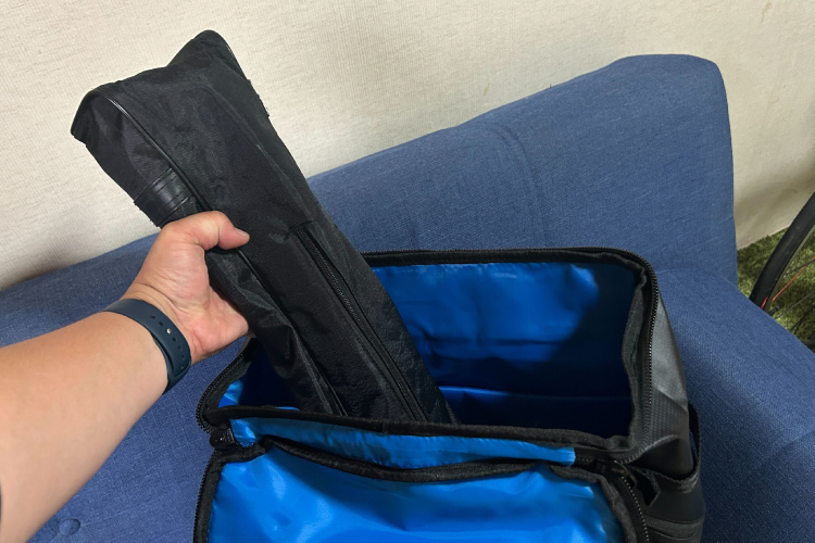 「単なるストレージ増設と思いきや、太さや長さもけっこう自由! 釣竿もボトルも、電動歯ブラシもいけました笑 出先で急に歯磨きしたくなっても大丈夫だ!!」