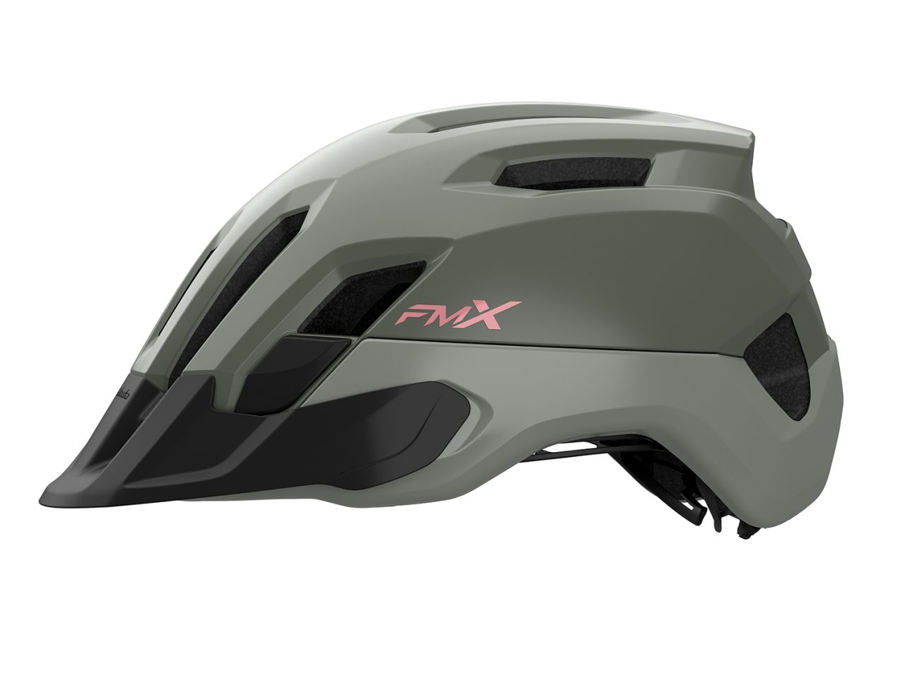 今回発売するFM-Xはマウンテンバイク用ヘルメットの形状をとりながら、フィールドやジャンルの垣根を越えて多目的に使えるスタイリッシュな帽体デザイン。今回、新たに設計した可動式バイザーは上下5段階の角度調整機能を持ち、跳ね上げ時にはゴーグルを収納することが可能。また、大胆なデザインのエアホールはアイウェアをホールドしやすい形状とした。