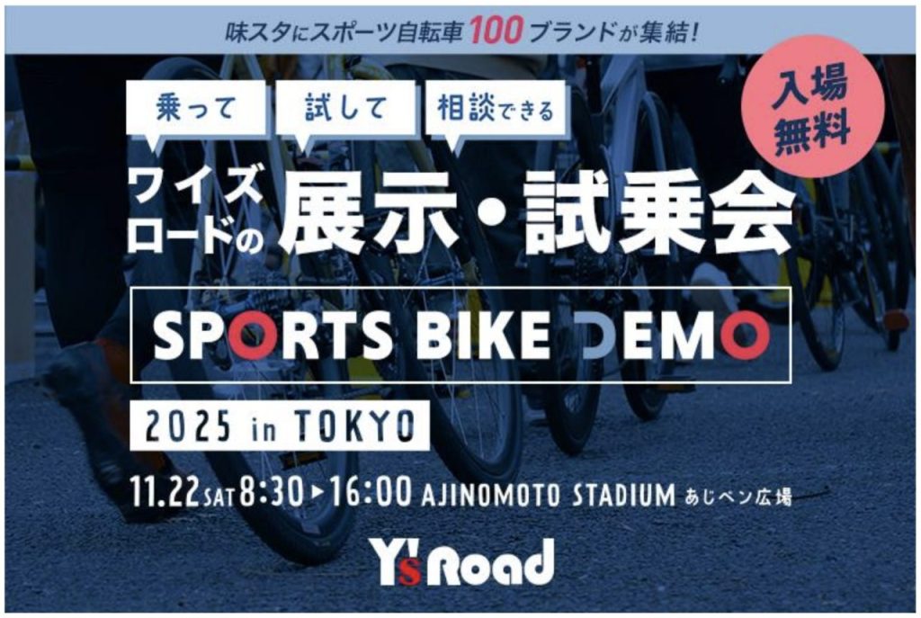 株式会社ワイ・インターナショナルが、11 月 22 日(土)に味の素スタジアム「あじペン広場」において開催する、スポーツ自転車の大規模展示・試乗会「ワイズロード スポーツバイクデモ2025 in 東京」の、試乗車リスト・ 講習会・アウトレット販売、キャンペーン等について決定しました。